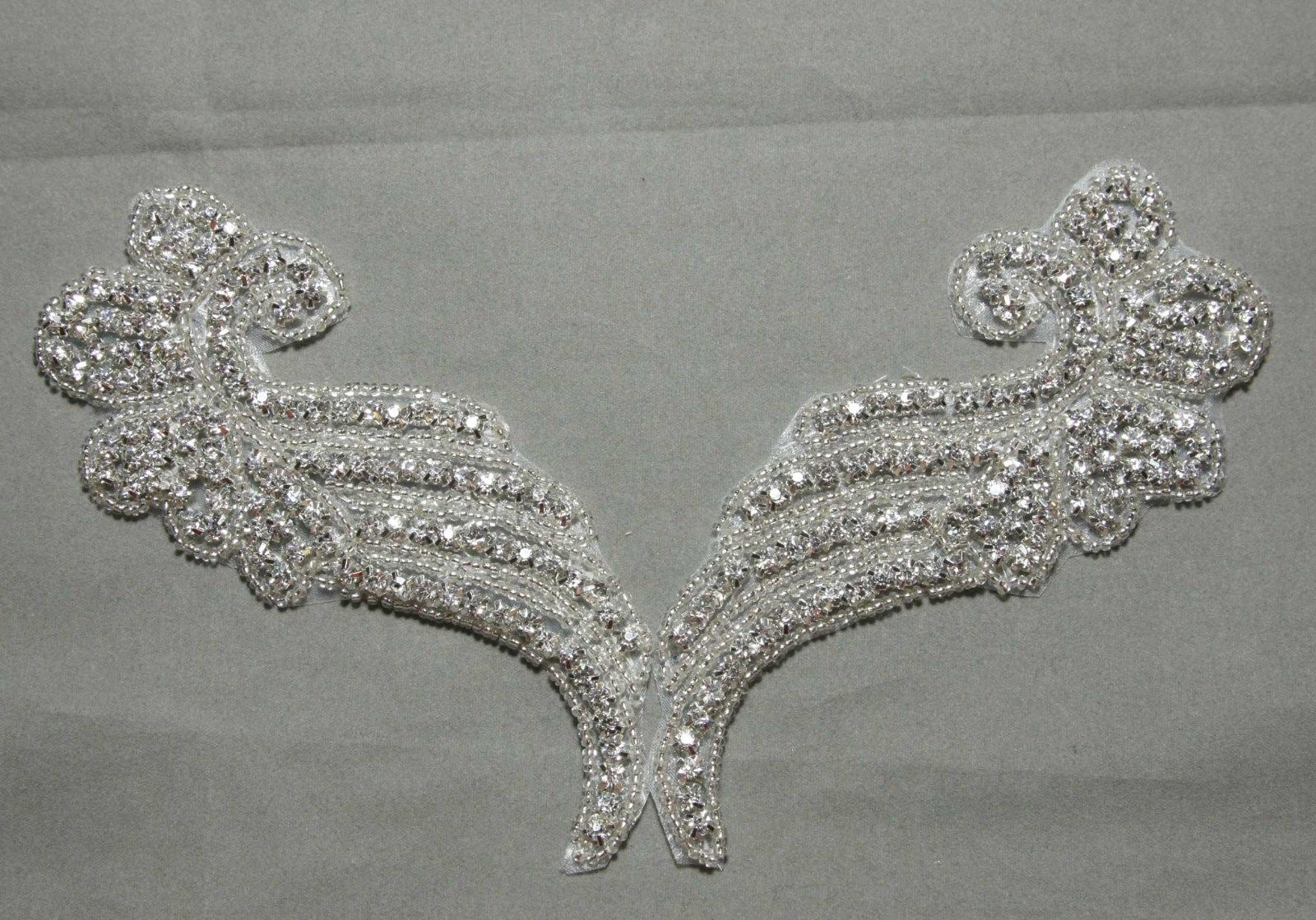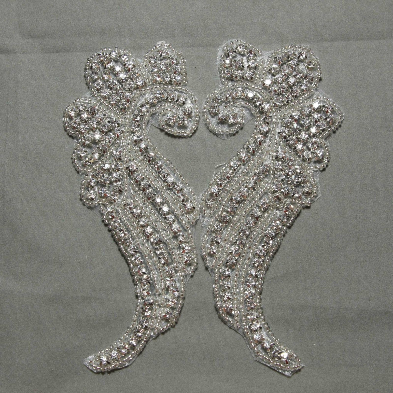 A Pair of Iron/Sew on wing shape wedding gown dress Rhinestone Applique Patch