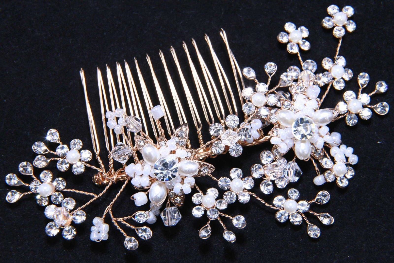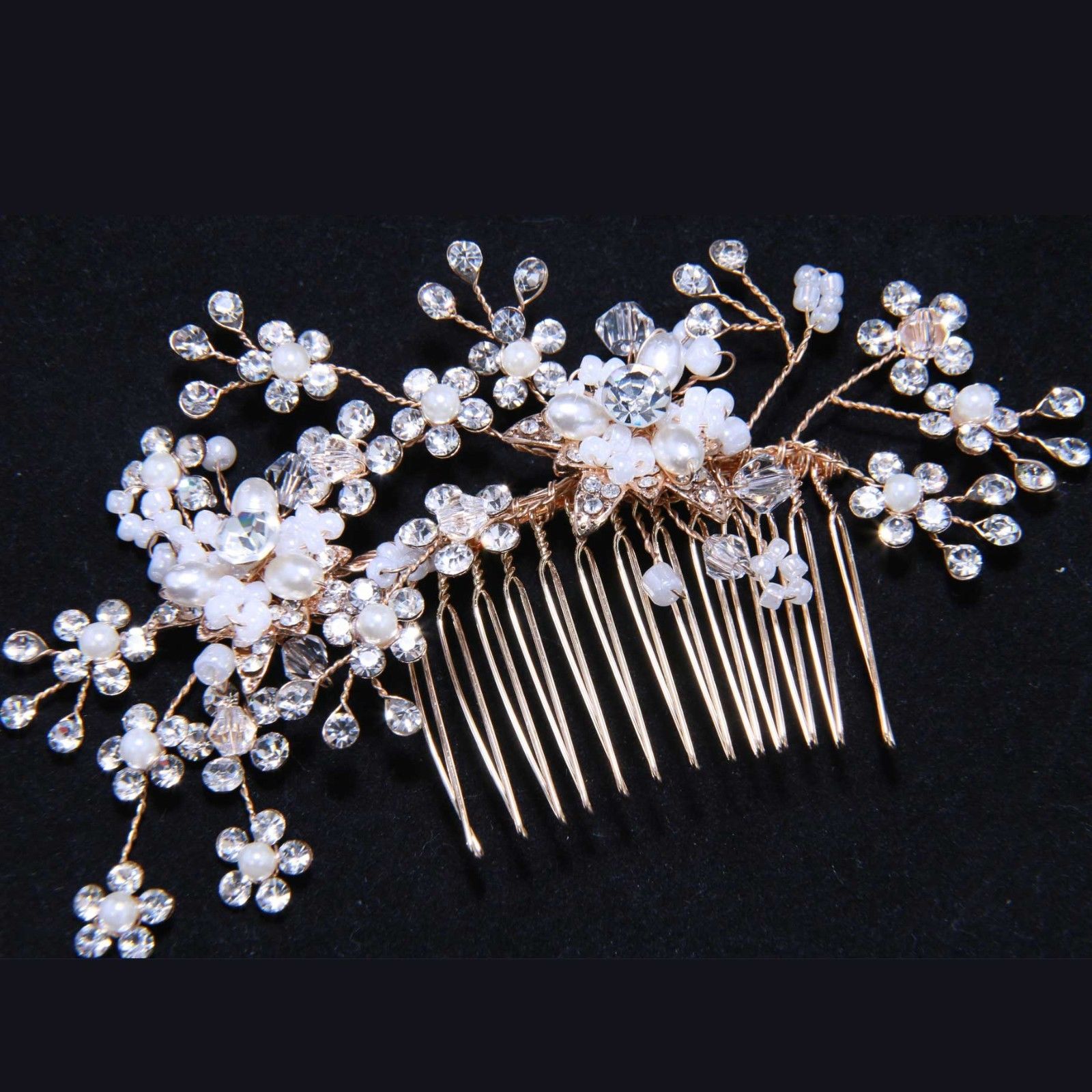 Description: Pearl rhinestone flower comb, Suit for women and ladies,perfect accessory for collection gift,bridal,wedding,cocktail party.