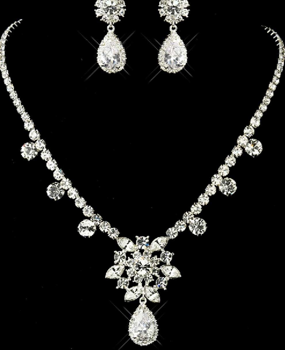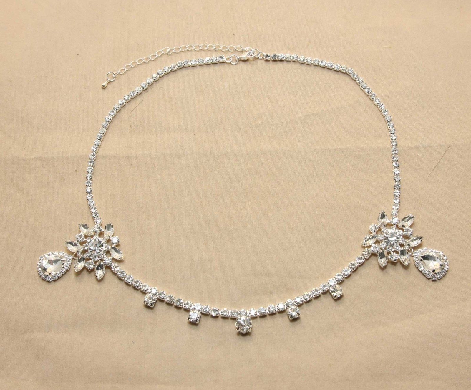 Wedding Bridal Rhinestone Crystal Flower Hair Chain,Necklace and Earrings Set